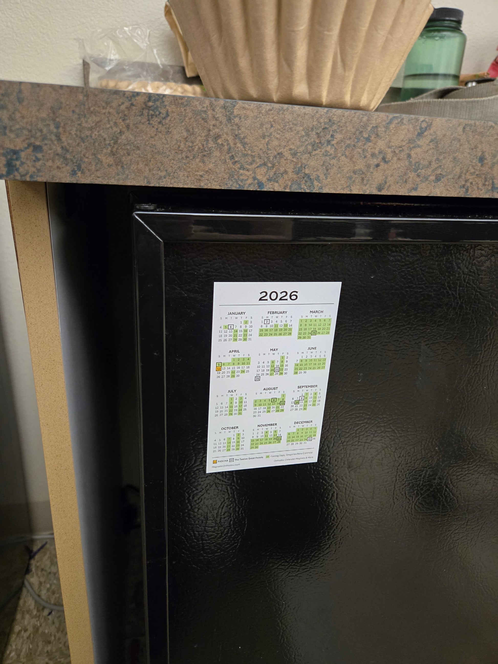 Refrigerator magnet printed with 2026 Orthodox Fasting dates, New Calendar version